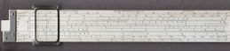 Another one of Dietzgen's high end celluloid/wood rules. In fact, this Vector Log Log Rule is identical in scale design and arrangement to the K&E vector model, the 4083-3. However, despite the stunning similarities there are also a few difference between these two classic vector slide rules. For one, the wood used here is not mahogany as in the K&E offerings ... it's much lighter coloured, yet definitely not bamboo either. In fact, if anyone knows what it is, please drop me a line! Secondly, the cursor has a variation of the classic Dietzgen closed metal design, with a laminate piece between the two substantial metal frames. Unfortunately, one of the cursor glasses is cracked on this rule. The brown all-leather case is also very similar to the equivalent high-end K&E case, although a slightly darker shade in this instance. A beautiful rule, nicely done, and difficult to distinguish from the K&E model.