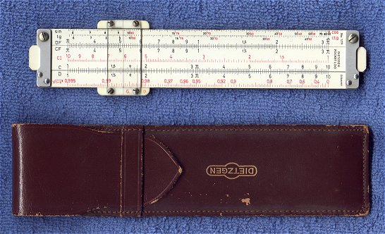 Dietzgen was one of the major US drafting and related supply companies, second to Keuffel & Esser. Their slide rules were a bit unusual, as they sold their own brand of rules, as well as rules made by many different manufacturers but branded under the Dietzgen name. Their in-house rules closely resembled those of their main competitor, K&E, and can often be mistaken for them. In fact, I've often seen cases and cursors from one manufacturer adorning rules from the other. Most of their rules were made on a mahogany core with celluloid facings, although they frequently strayed into other kinds of wood. They also sold a number of plastic rules made by various US manufacturers and Faber Castell (plus at least one Aristo that I know of). They also sold a number of aluminum rules made by the German maker Ecobra (also known as Eco Bra). Apparently, Dietzgen was their major customer, and eventually acquired them around the end of the slide rule production era. Dietzgen is one of the few drafting supply companies that has survived to this day ... but as a specialized paper and film product company (sadly, no more slide rules). Their rules remain popular with collectors, as many were of very high quality.