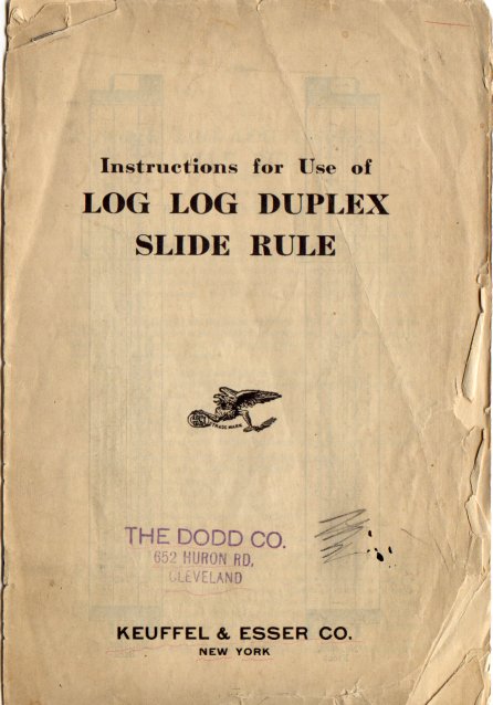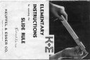 An even older version of K&E's standard high end rule, although I must admit this one had me confused for awhile. Clearly, someone has gone and replaced the original frameless cursor with one manufactured after 1937. I'm not entirely surprised ... the older frameless design was prone to breaking. The serial number of this rule clearly places it to 1929, and that fits with patent date of April, 1924 on the face of the rule (later models just had patent numbers). The 4092-3 shares many of the same design features of the early models 4081's and the 4091 presented above. The main differences are the reduced number of scales on this rule, with their simpler monotone appearance and less intuitive layout as you might expected from an older rule. The case is also made of the older all-leather style, with the hinge pieces sewn on instead of bolted. Unfortunately most of the closing flap is missing, but you can still see the stitching in the high resolution pictures. I've also included a scan of the first page of a tattered set of instruction sheets for this model rule. Overall, still a nice mahogany/celluloid rule, sharing the same fundamental design as later rules. And as for the replacement parts, K&E clearly expected you to replace broken parts with newer versions ... it keeps the rules functional, but it does make things tricky for collectors!